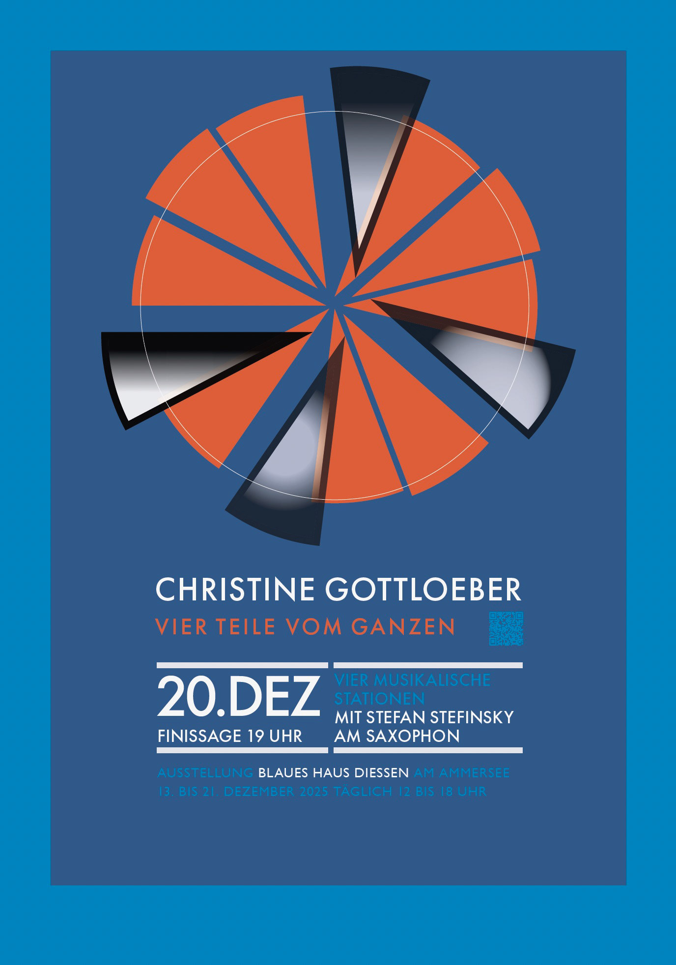 FINISSAGE am 20. Dezember | Vier Hörstationen | STEFAN STEFINSKY , der Komponist und Saxophon-Solist, wird an vier Hörstationen musikalisch auf ausgesuchte Werke in der Ausstellung antworten — eine Bild-Ton-Performance.